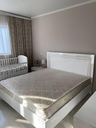 - Кровать двуспальная с высоким изголовьем, корпус в белом глянце. Основание под матрас и матрас на фото входят.