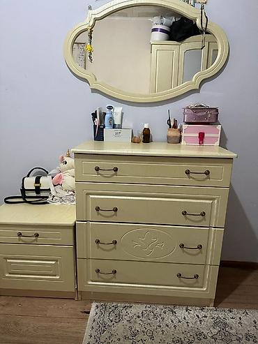 - Комод с 4 выдвижными ящиками; над ним большое фигурное зеркало.