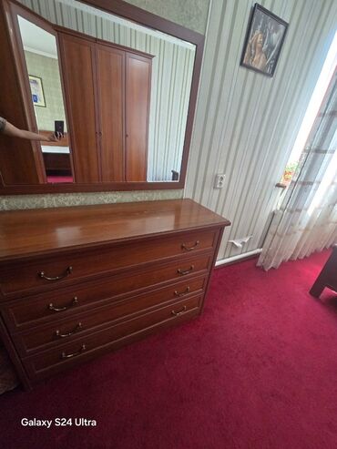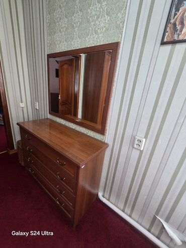 - Настенное зеркало большого формата в деревянной раме, устанавливается над комодом.