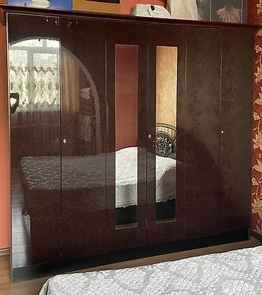 - Шкаф платяной многосекционный с распашными дверями, две центральные двери с вертикальными зеркалами.