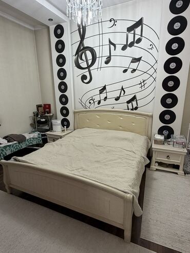 Спальный гарнитур, Двуспальная кровать, МДФ, цвет - Бежевый