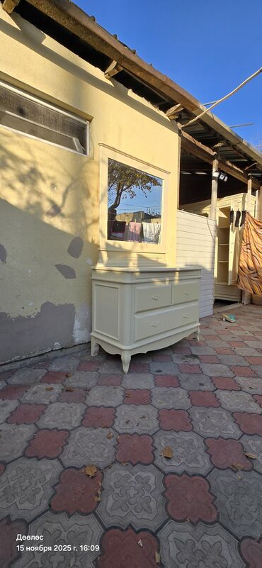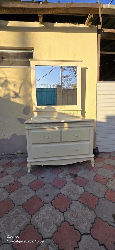 - Комод на ножках с большим настенным/навесным зеркалом.