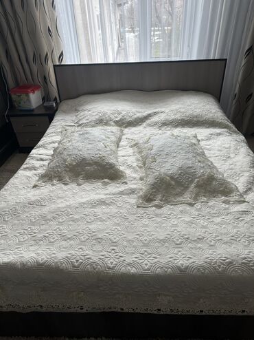 - Кровать рассчитана на стандартный двуспальный матрас; изголовье защищает стену и текстиль.