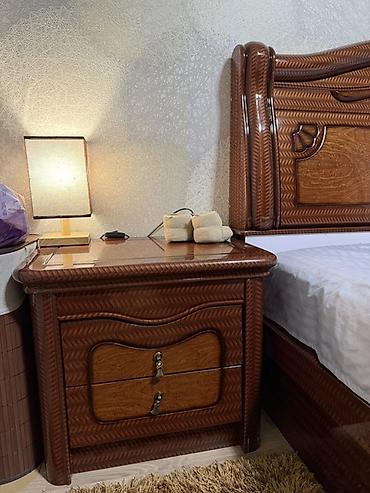 Спальный гарнитур, Б/у, Двуспальная кровать, Шкаф, Тумба, Дерево, цвет - Коричневый