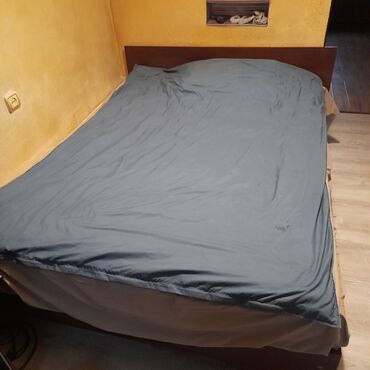 - Двуспальная кровать с высоким изголовьем в том же оттенке, прямые лаконичные формы.