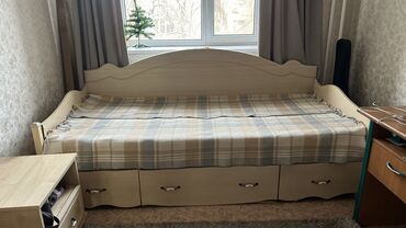 Спальный гарнитур, Б/у, Односпальная кровать, Шкаф, Тумба, МДФ, Самовывоз, цвет - Бежевый