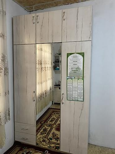 - Шкаф-купе/распашной высокий трехдверный с зеркалом посередине, верхними антресолями и нижними выдвижными ящиками.