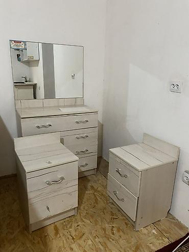 - Комод с большим настенным зеркалом и тумбой-надставкой.