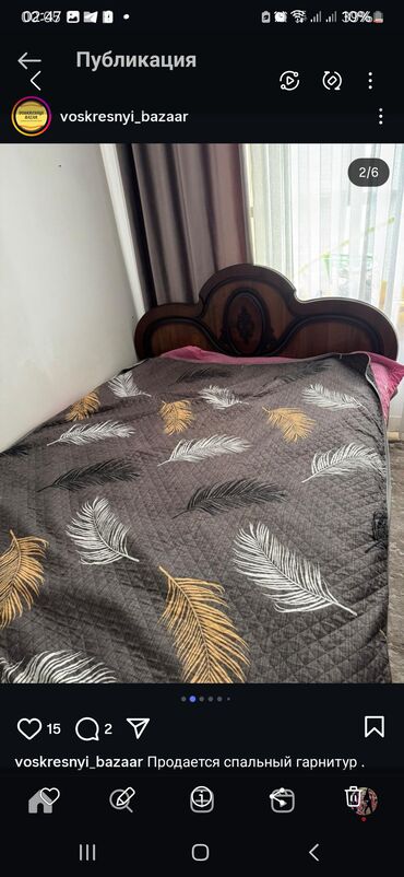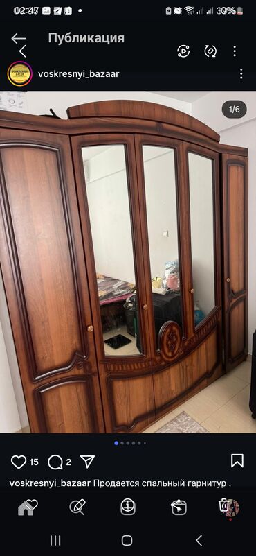 Гарнитур для спальни в классическом стиле с резным декором и мягкой