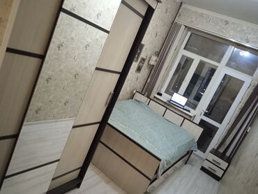 - Кровать двуспальная с высоким изголовьем в едином дизайне с гарнитуром.