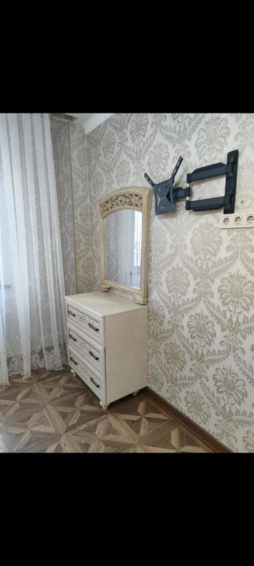 - Комод на 4 выдвижных ящика с резными планками, сверху туалетное зеркало с изящным карнизом.