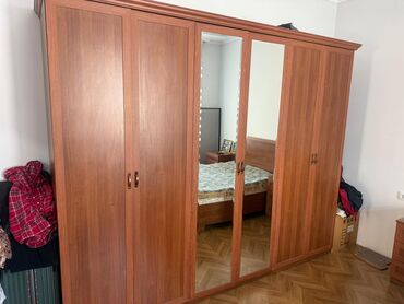Спальный гарнитур, Б/у, Двуспальная кровать, Шкаф, Комод, Россия, МДФ, Самовывоз, цвет - Бежевый
