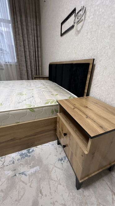 - Двуспальная, основание из ЛДСП под натуральный дуб с контрастной черной кромкой.