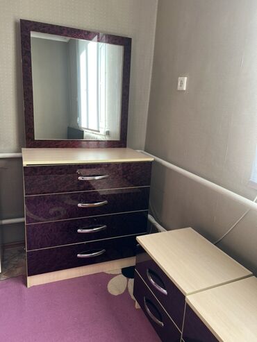 - Вместительная система хранения: шкаф с зеркалами расширяет пространство, дополнительно четыре ящика в тумбах.