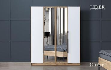 Спальный гарнитур "Стейси" 4Д, сп. место 160х200 см дуб вотан/графит белый Лидер,
