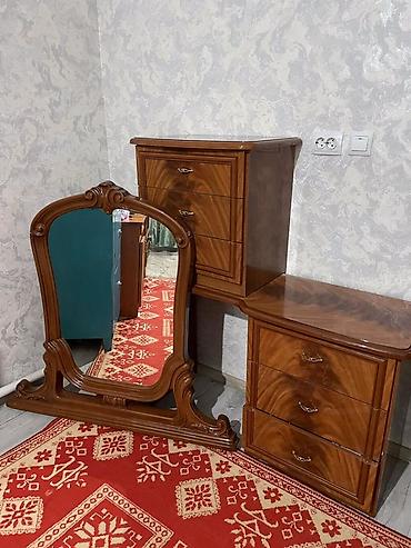 - Туалетный стол/трюмо из двух тумб с рабочей столешницей: слева и справа по тумбе с выдвижными ящиками (по три в каждой).