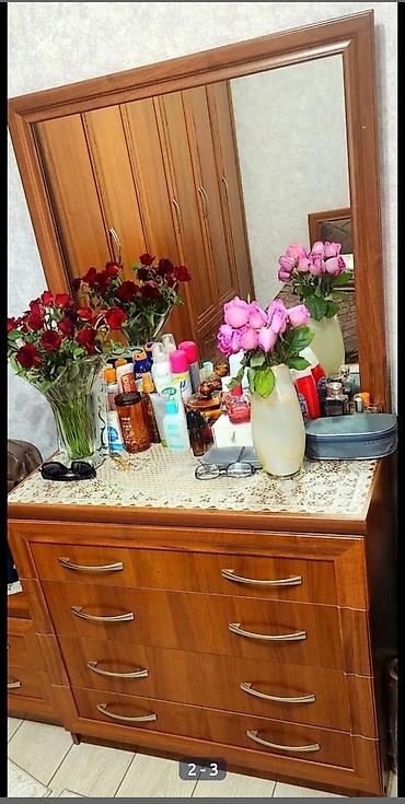 г.Кара Балта. кв.ковровщиков продаю спальный гарнитур в хорошем состоянии в комплекте: шкаф,двуспальная кровать,комод с зеркалом, 2-тумбы. Самовывоз.Цена 35000с