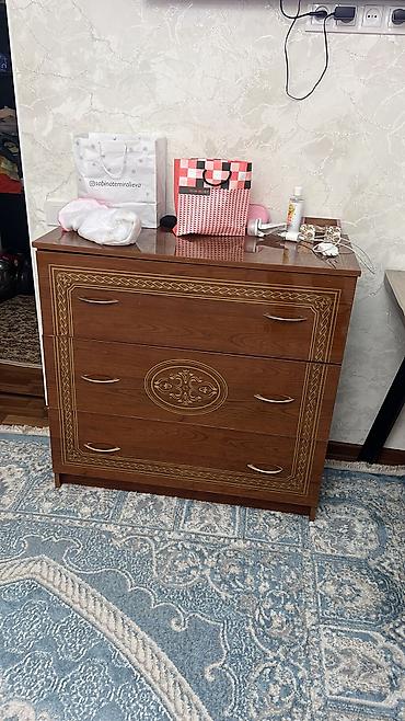 Спальный гарнитур, Б/у, Тумба, Двуспальная кровать, Комод, Белоруссия, Дерево, Самовывоз, цвет - Серый