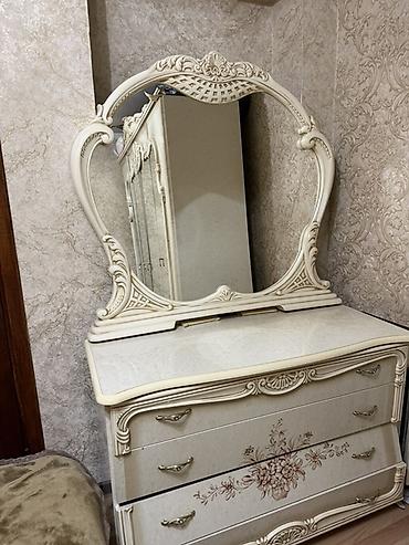 Спальный гарнитур, Б/у, Двуспальная кровать, Шкаф, Трюмо, Италия, МДФ, Самовывоз, цвет - Бежевый