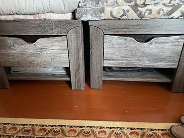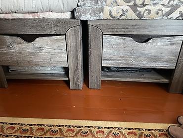 - Две прикроватные тумбы: каждая с выдвижным ящиком и открытой нижней полкой.