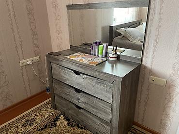 - Туалетный стол/комод с большим настенным зеркалом: 3 вместительных выдвижных ящика, широкая столешница.