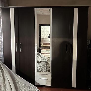 - Шкаф платяной четырехдверный с центральным зеркалом. Внизу под зеркалом — два выдвижных ящика. Удобные длинные ручки, распашные двери.