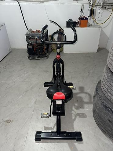Спин-байк/велотренажер - Тренировочный спин-байк с ременным приводом и маховиком закрытого типа. - Ручная регулировка нагрузки поворотным регулятором (красная рукоятка) + экстренный стоп. - Бортов...