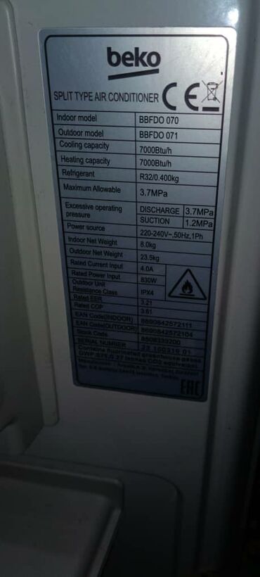 Сплит‑система Beko (модель: внутренний блок BBFDO 070, наружный блок BBFDO 071).