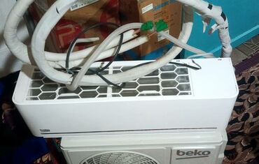 В комплекте на фото: внутренний и наружный блоки Beko, трасса/шланги и проводка. Подходит для охлаждения и обогрева небольших помещений, экономичный хладагент R32.