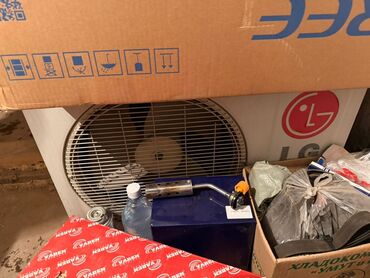 - Внешний блок LG с осевым вентилятором; комплект сплит‑системы (внутренний + наружный блок).