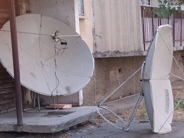 Спутниковую тарелку с головками и ресивером, комплект. Тарелка большого диаметра примерно 150 см. . . . . . . .