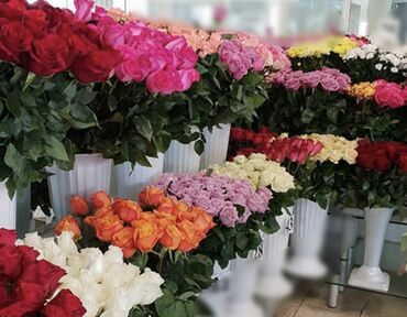 - Большой выбор роз: красные, белые, кремовые, лиловые, розовые, персиковые, оранжевые, двухцветные. Классические розы с крупным бутоном, кустовые розы, пионовидные и спрей-розы.