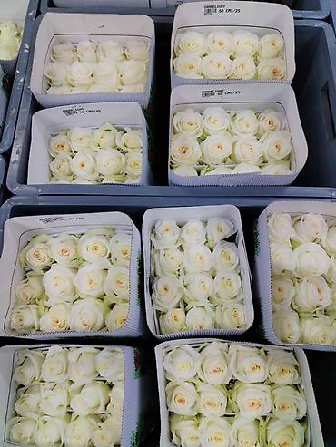 Розы срезанные в упаковках. - Ассортимент цветов: белые/кремовые