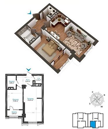120 000 USD3 комнаты, 62 м²