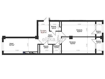 2 комнаты, 83 м², Элитка, 16 этаж, ПСО (под самоотделку)