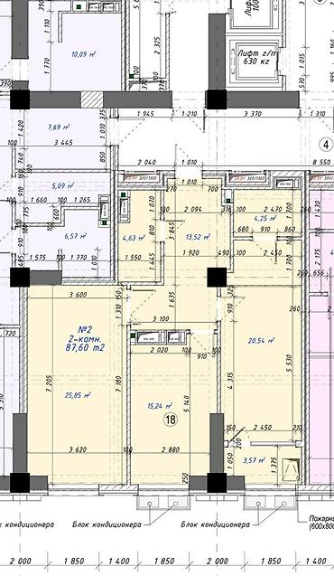 2 комнаты, 86 м², Элитка, 6 этаж, Готовая ПСО (под самоотделку)