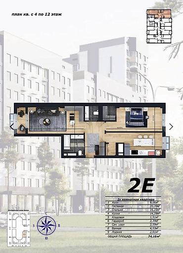 72 500 USD2 комнаты, 74 м², Элитка, 8 этаж, Готовая ПСО (под самоотделку)