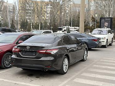 Toyota Camry (XV70), седан, темно‑серый цвет. Особенности и комплектация: - Агрегат: бензиновый двигатель, передний привод, автоматическая коробка передач - Экстерьер: светодиодная оптика, противо...