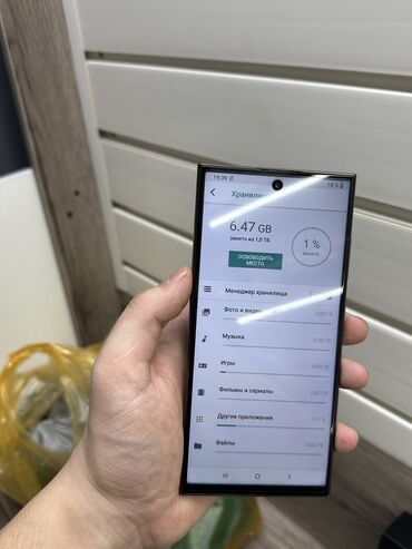 Samsung Galaxy S23 Ultra, цвет черный Ключевые характеристики: - Экран 6.8" Dynamic AMOLED 2X, тонкие рамки, фронтальная камера по центру. - Память: 12 ГБ ОЗУ. - Хранилище: 1 ТБ, свободно ~975 ГБ ...