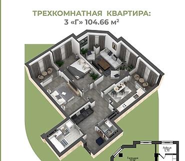 3 комнаты, 104 м², Элитка, 13 этаж, Готовая ПСО (под самоотделку)