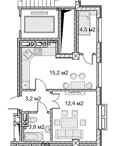 54 500 USD1 комната, 40 м², Элитка, 2 этаж, Готовая ПСО (под самоотделку)