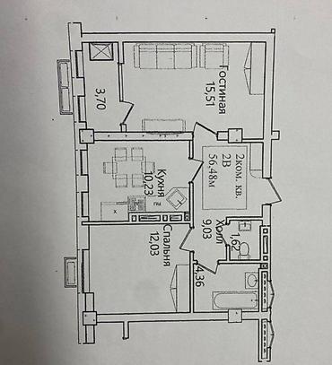 Продается 1 комнатная квартира с ремонтом Район:Асанбай СК: НБК Курулуш ЖК: Немецкий квартал Площадь: 49,5м² 2 балкона Этаж: 6 из 14 Документы:ДДУ Коммуникации:Все центральные(отопление газовое...