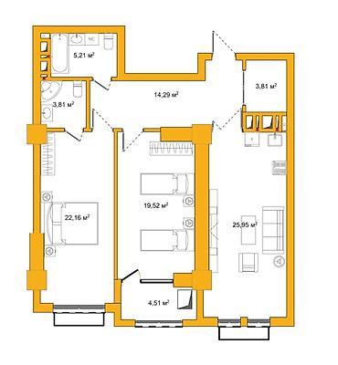 3 комнаты, 99 м², Элитка, 4 этаж, Готовая ПСО (под самоотделку)