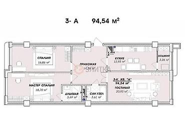 3 комнаты, 97 м², Элитка, 12 этаж, Готовая ПСО (под самоотделку)