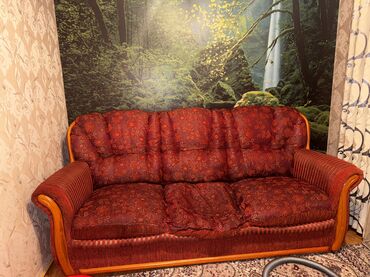 Продам советский диван ретро, основа дерево ,трёхместный б/у - Конструкция: классический прямой диван с деревянными боковинами и спинкой, на опорах. - Посадочные места: 3. -Самовывоз г.Бишкек