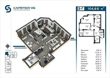 3 комнаты, 104 м², Элитка, 3 этаж, Готовая ПСО (под самоотделку)