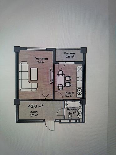 1 комната, 42 м², Элитка, 6 этаж, Готовая ПСО (под самоотделку)