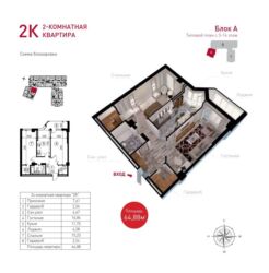 Полноценная 2 к.кв-ра ПСО 11эт/15. СК:"Пионер".ЖК"Пионер+". Площадь квартиры-64,88м2 Красная книга,Техпаспорт на стадии выдачи. 2 лифта:грузовой и пассажирский.