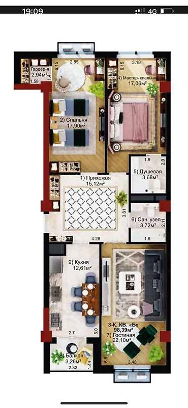 🔹Площадь: 98.39 м²