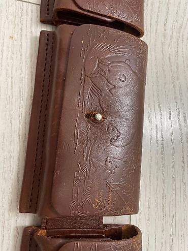 Патронташ на пояс - Материал: толстая натуральная кожа и плотная брезентовая ткань. - Конструкция: кольцевая лента с множеством индивидуальных гнёзд для патронов (эластичные кожаные ячейки по пери...
